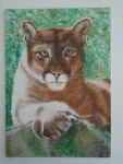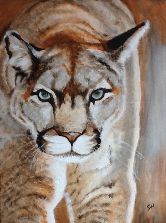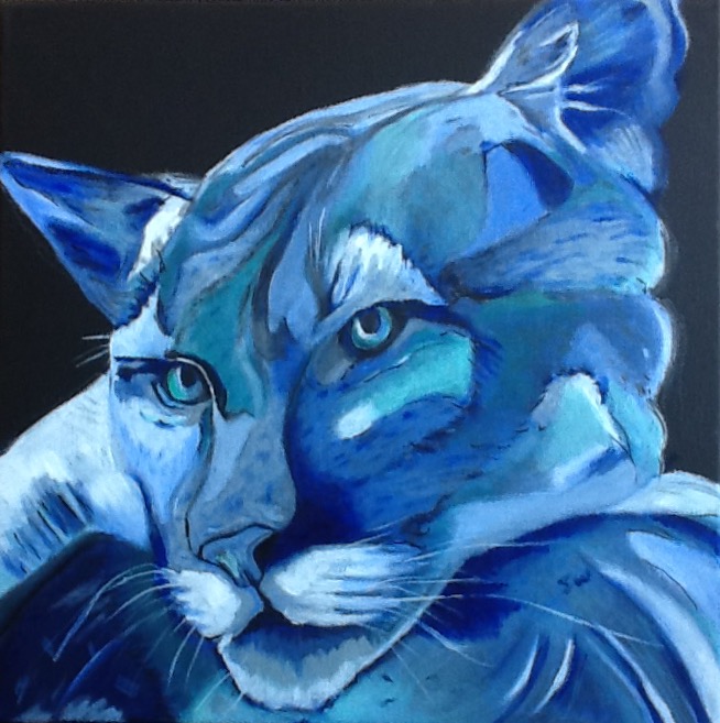 Small oil painting on canvas board, 30 x 30 cm, of mountain lion. This one was created at my small weekly art group meeting over a couple of weeks, but here it is, finished at last!