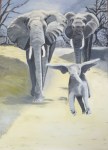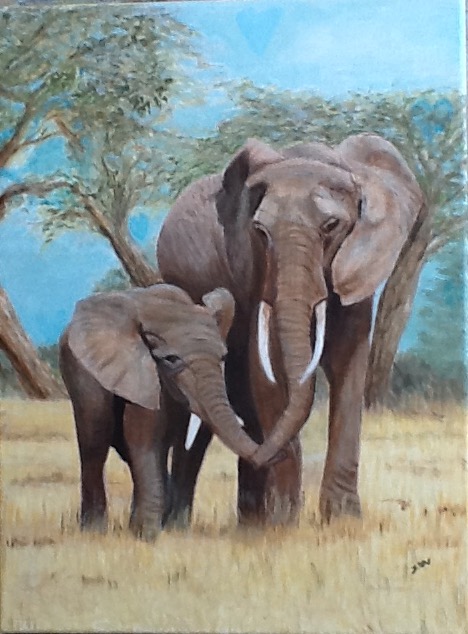 Elephants on my mind! These two are oil paintings on canvas – one on board and the other on plain canvas. Both are 30 x 40 cm.