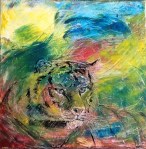 Tiger in oils with cold wax, on canvas 50 x 70 cm.