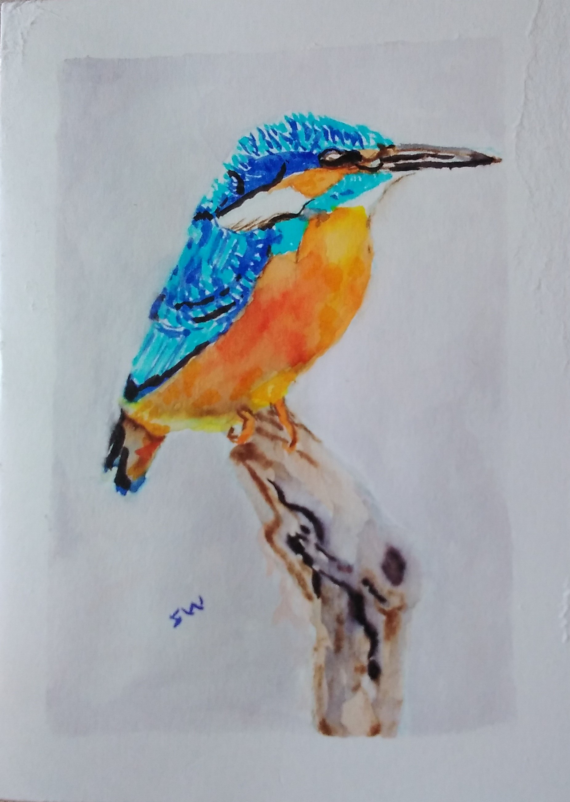 Kingfishers – and watercolour. As earlier, it’s still too cold to work! I have been working on some kingfishers and I am showing just a few of them below. I hope you like them. Happy New Year everyone!