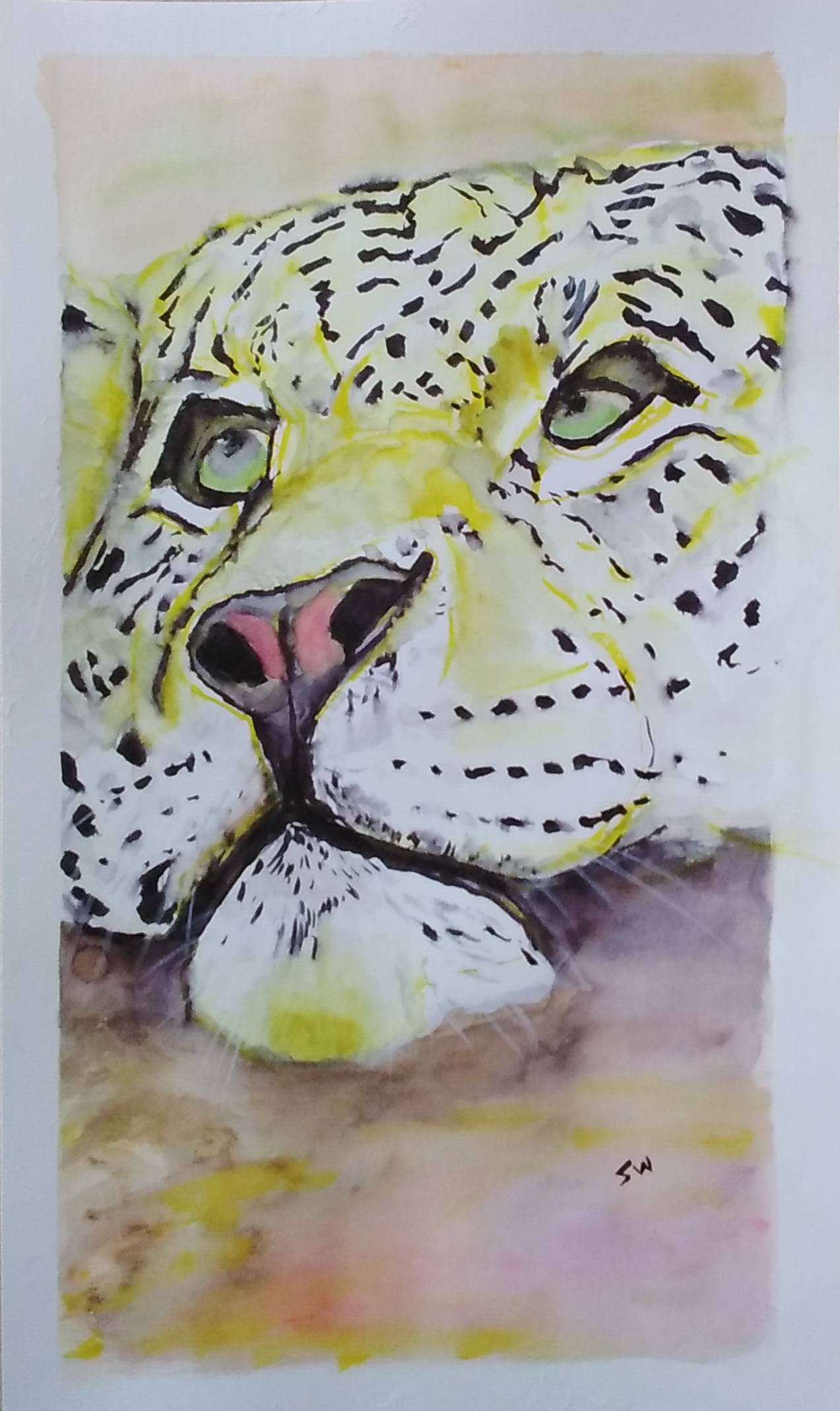 An abstracted Tiger (ok the subject matter isn’t so different) but it is painted in watercolour on a 40×50 cm canvas! I thoroughly enjoyed this process and was inspired by a close friend!