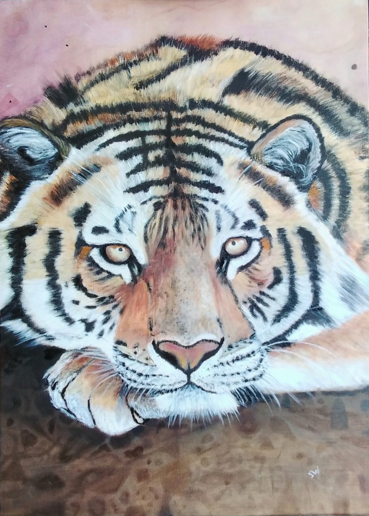 I have been working on a couple of portraits lately, which has delayed me tackling my favourite animal – yes – tigers! This one is painted in oils on 30 x 40 cm canvas and was a real release, and pleasure to do.