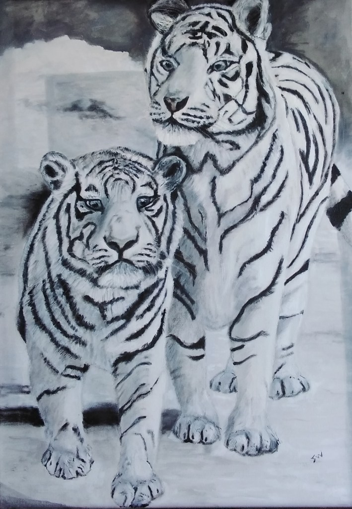 White Tigers – oil paint on canvas 50 x 70 cm. I love Tigers!