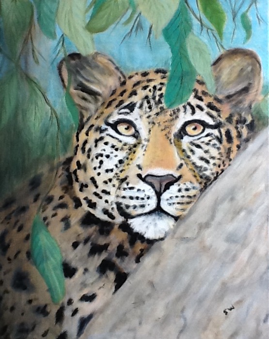 Gorgeous big cat stalking me! Oil paint on 30 x 40 cm canvas.
