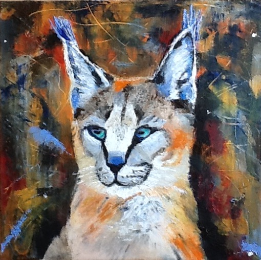 A wild cat with attitude – resting up and contemplating. Enjoyed doing this one. He’s painted in oils on 30 x 30 cm canvas board.