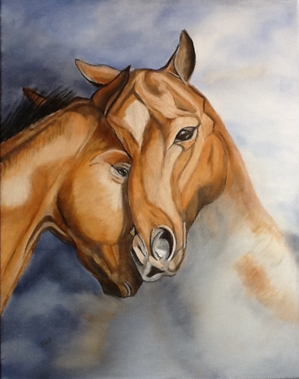 Painted in oils on 40 x 50 cm canvas, these horses show their caring side. All animals are wonderful!