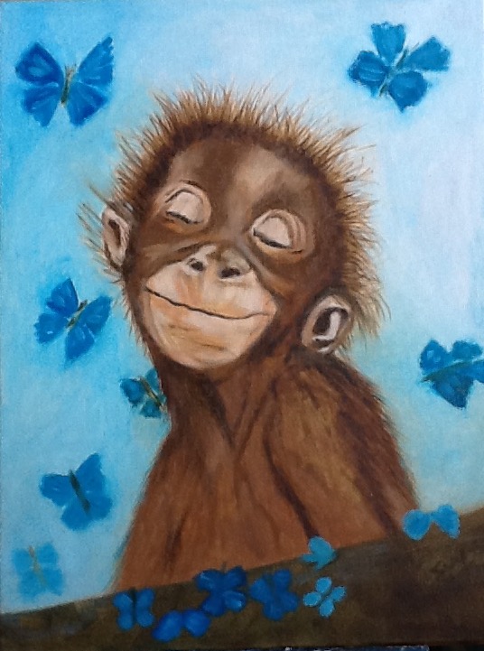 I just had to have a go at this Chimp – he was charming!! Oil on canvas, A4 size.