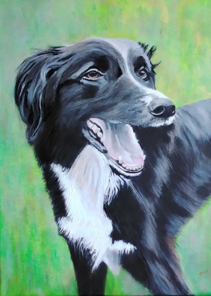 This beautiful collie belongs to a wonderful friend who wanted a painting of him in oils. Here it is! It’s in oil paint on 30 x 40 cm canvas. From her reaction to it, I would say she’s pleased!
