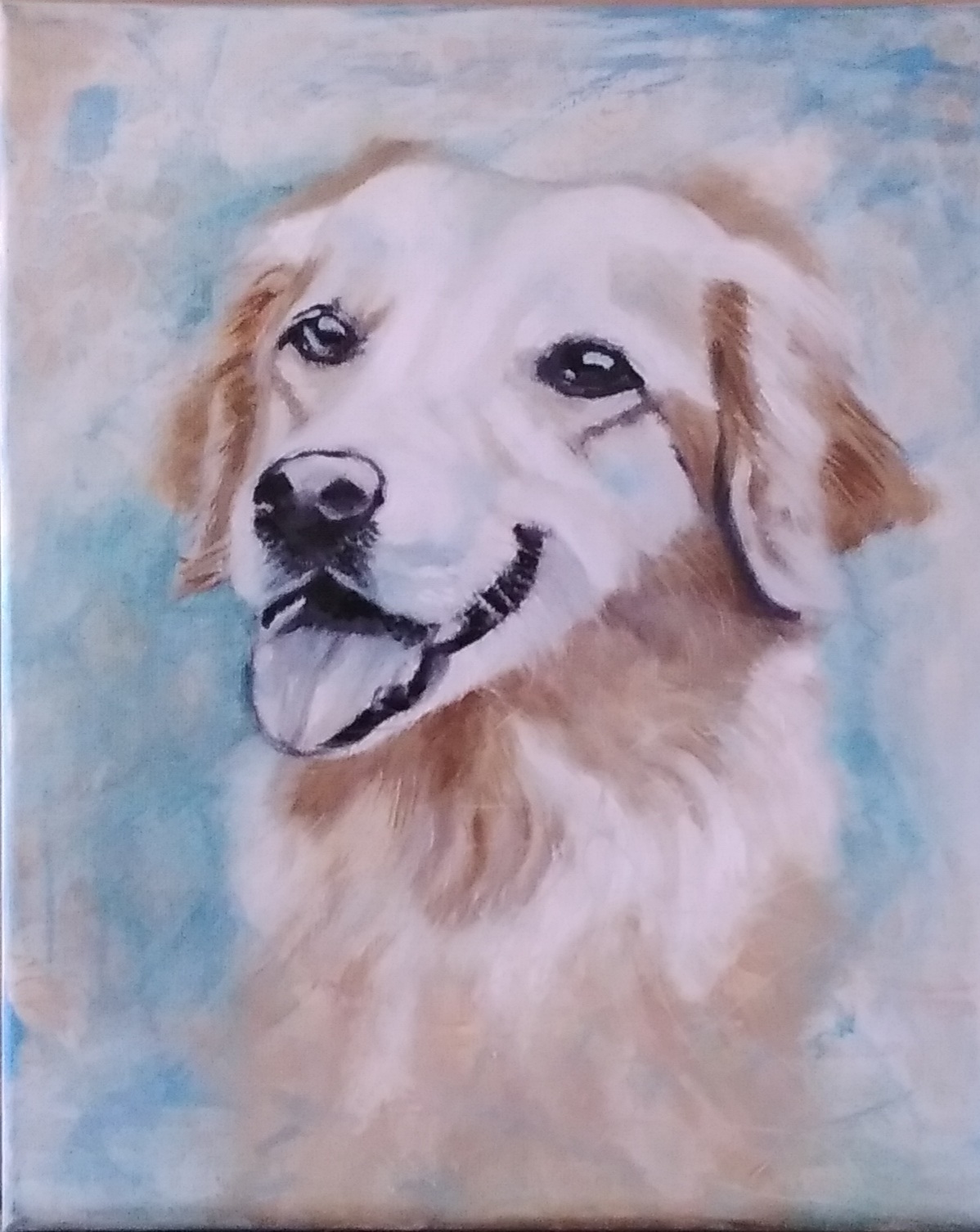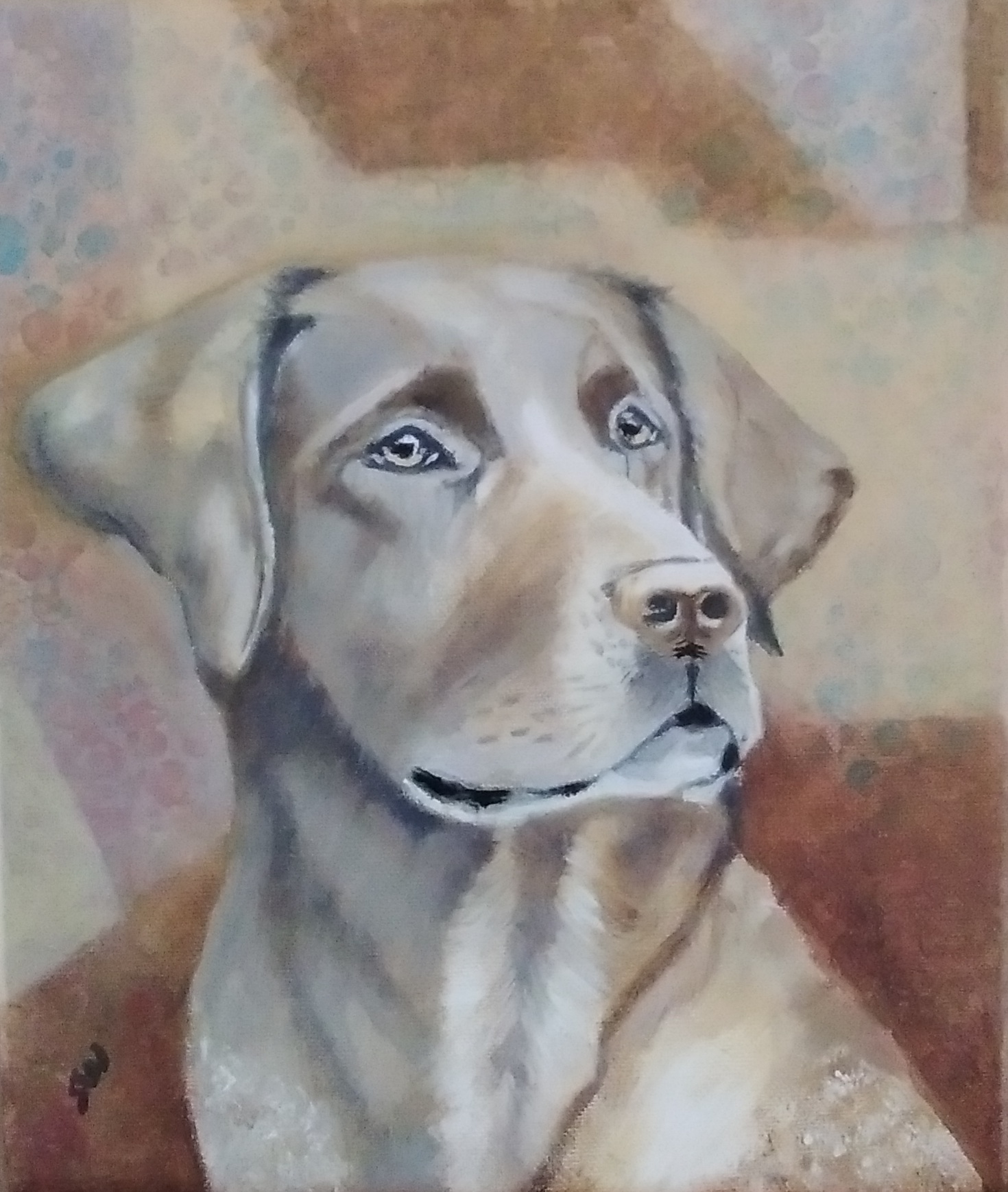 The Retriever is painted in oils on 25×30 cm canvas and the other is mixed media (but mostly oils) on 21×29.7 cm canvas. I am having such a good time with these!!