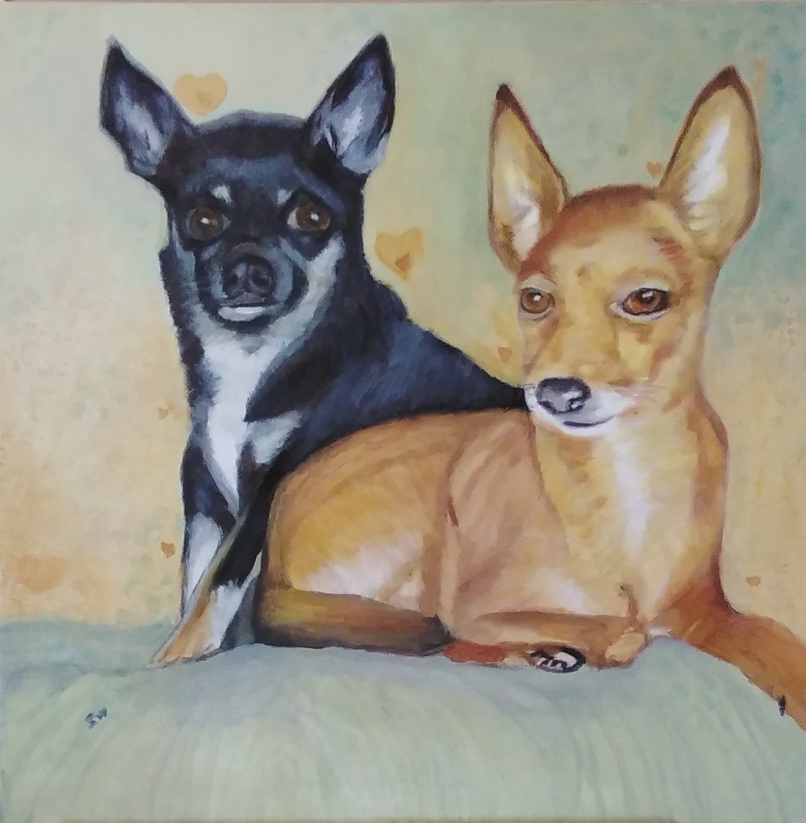 These two were completed this week, both for friends! The two dogs together were very small breed and much loved – painted in mixed media (acrylic, watercolour pens, and oils) on a 40×40 cm canvas. The border collie is mostly oils on a 30×30 canvas. Contact me at sara_wooldridge@artcreationsbysara.com if you have a pet you would like immortalised!