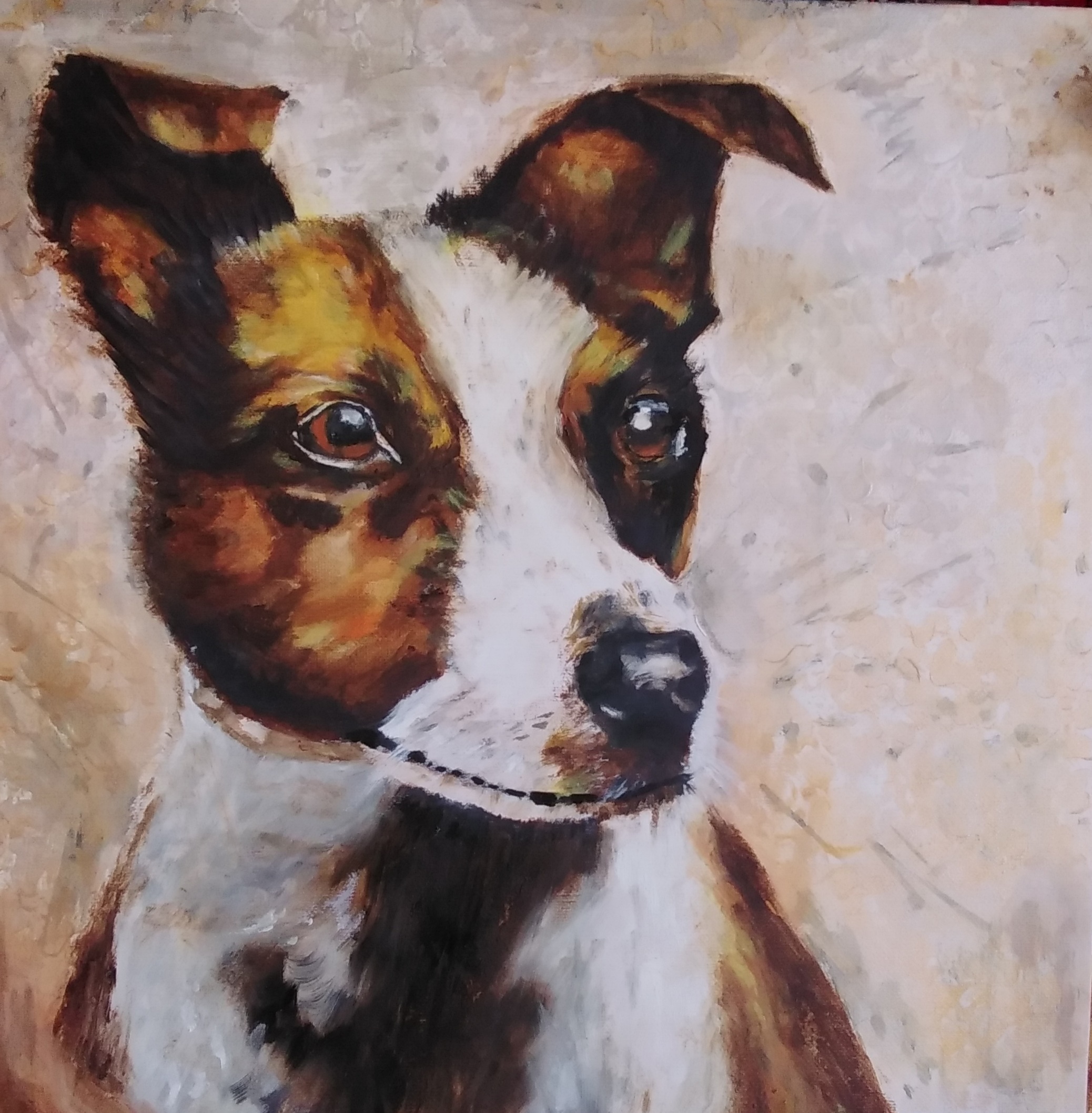 A picture of a family dog…worth a try! Oil on canvas, A4 size.